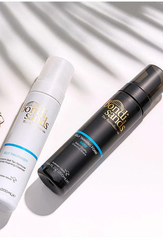 - Bondi Sands - Self Tanning Foam Dark: Bondi Sands tanning staat bekend om de geurvan kokosnoot en uiteraard de natuurlijke zomerse tint. De Tanning Foam Dark is de medium kleur van Bondi Sands en heeft een natuurlijke uitwerking op de medium en normale huidtypes