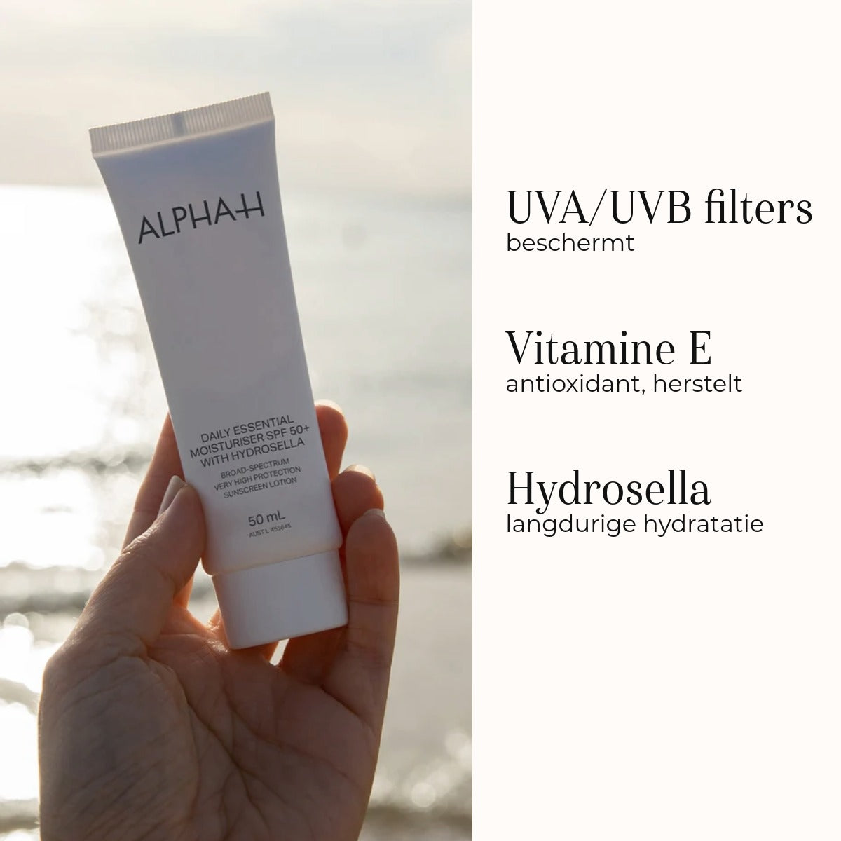 De Alpha-H Daily Essential Moisturiser SPF50+ is een hydraterende dagcrème met spf vol antioxidanten. Het voedt, hydrateert, is een fijne basis voor make-up, trekt snel in en laat geen vette of witte waas achter op de huid.