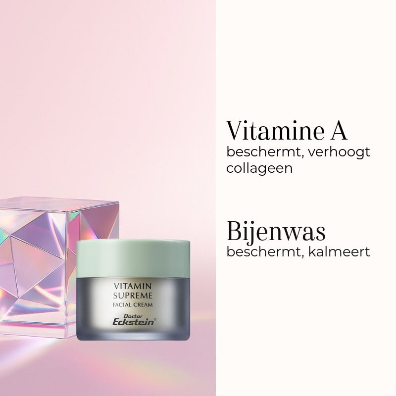 De Doctor Eckstein Vitamin Supreme is een gezichtscreme speciaal voor de normale, droge & vochtarme huid. Ideaal voor de huid die gebrek heeft aan vitamines. Het maakt de huid beter bestand tegen invloeden van buitenaf.