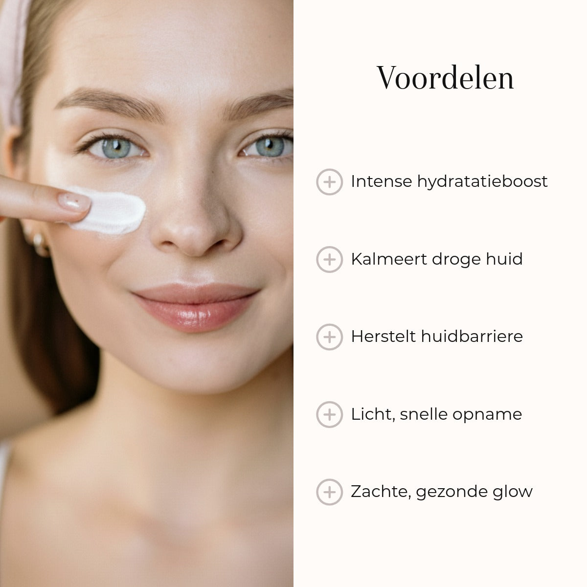 Deze crème zorgt ervoor dat de gevoelige huid weer comfortabel aanvoelt en er rustiger uit ziet. Roodheid, jeuk en irritatie worden aanzienlijk verminderd. Het is rijk aan antioxidanten die de huid beschermen tegen vrije radicalen. Daarnaast wordt de collageen productie gestimuleerd