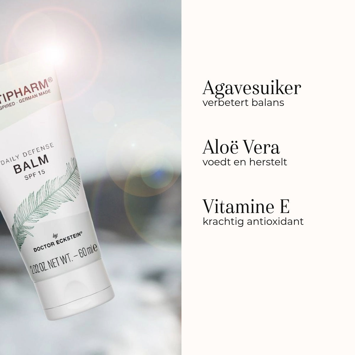 De Daily Defense Balm SPF 15 van Dr. Eckstein is een lichte, multifunctionele balsem die je huid beschermt tegen schadelijke invloeden van buitenaf terwijl deze intensief hydrateert.