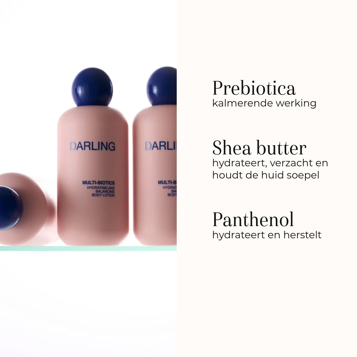 De Darling Hydrating and Balancing Body Lotion is een bodylotion die de huid verbetert. Het versterkt de huidbarrière, voorkomt vochtverlies en helpt het microbioom van de huid te herstellen.