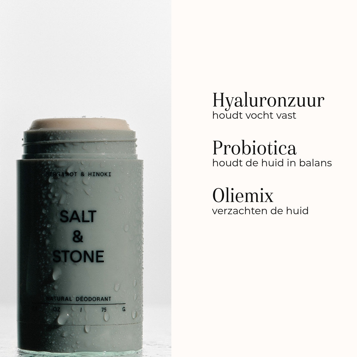 De Salt & Stone Salt & Stone Natural Deodorant - Bergamot & Hinoki (Sensitive Skin) is een natuurlijke deodorant gel, zonder baking soda, ideaal voor de gevoelige huid. De deodorant glijdt makkelijk over de huid en laat geen witte waas achter. Met de geur van bergamot & oranjebloesem.
