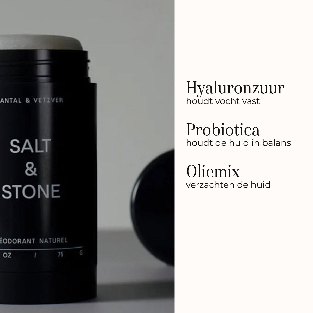 De Salt & Stone Natural Deodorant Gel Santal & Vetiver is een natuurlijke deodorant gel, zonder baking soda, ideaal voor de gevoelige huid. De deodorant glijdt makkelijk over de huid en laat geen witte waas achter. Met de geur van sandelhout & vetiver.