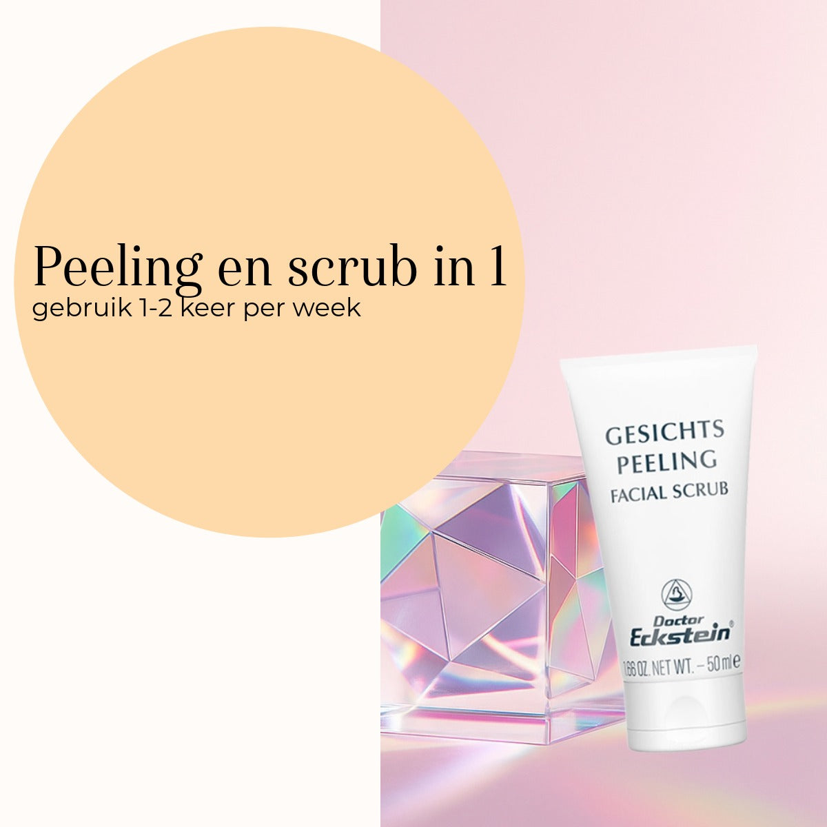De Doctor Eckstein Gezichtspeeling is een peeling/scrub met een zeer fijne structuur die dode huidcellen verwijdert en de huidstructuur zichtbaar verbetert. De huid wordt zichtbaar gladder, zachter en soepeler.