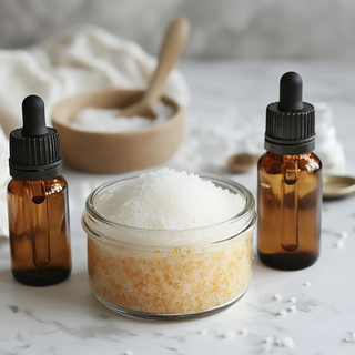 - Fysieke exfolianten: Dit zijn producten die kleine deeltjes bevatten die mechanisch over de huid worden gewreven om dode huidcellen te verwijderen. Voorbeelden hiervan zijn scrubs met suiker, zout of microdeeltjes.