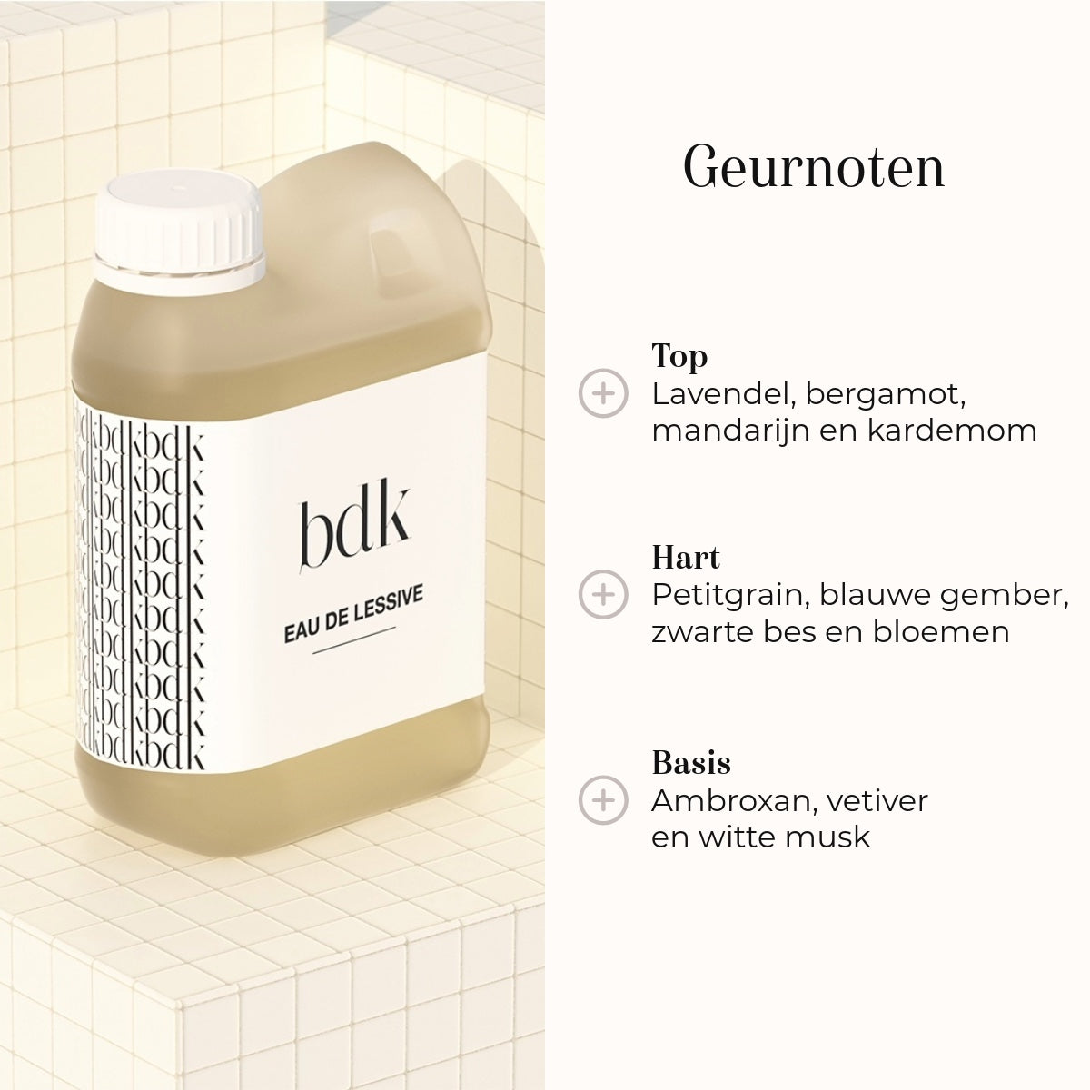 De BDK Parfums Eau De Lessive White is een vloeibaar wasmiddel dat je wasgoed heerlijk laat ruiken. Het wasmiddel is ontwikkeld als een eau de parfum voor de huid. Het wasmiddel is geschikt voor al je wasgoed.