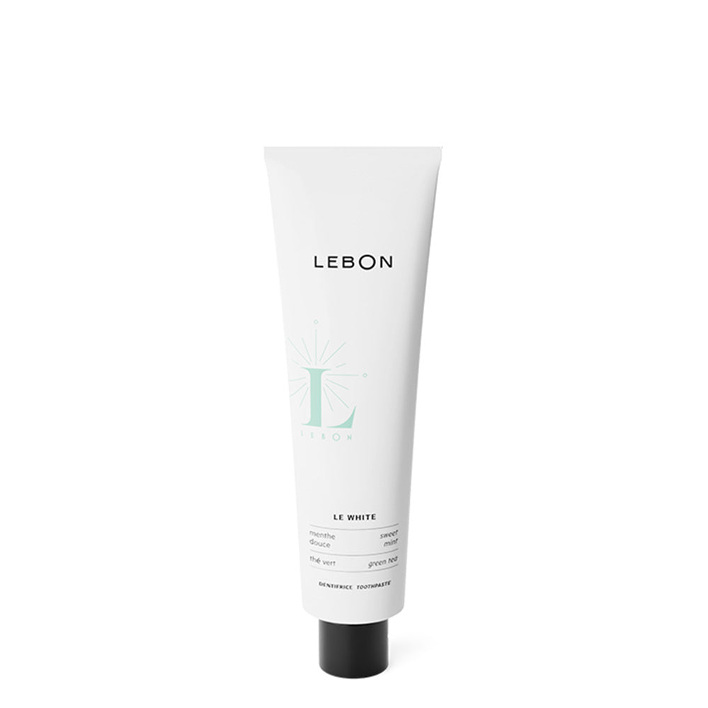 De Le White tandpasta van LEBON is dé whitening-tandpasta. Met een heldere, frisse smaak van zoete Marokkaanse munt en groene thee verlevendig je je poetservaring. Het aroma brengt een gevoel van puurheid en energie, gecombineerd met een natuurlijke whitening-werking. Het verwijdert zacht verkleuringen voor een stralende glimlach.