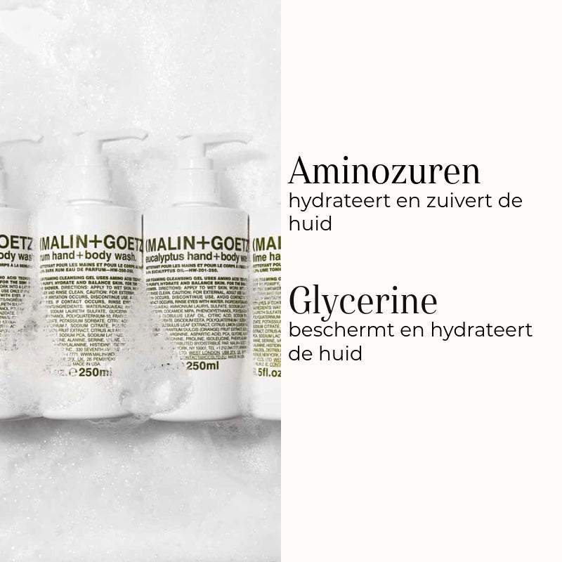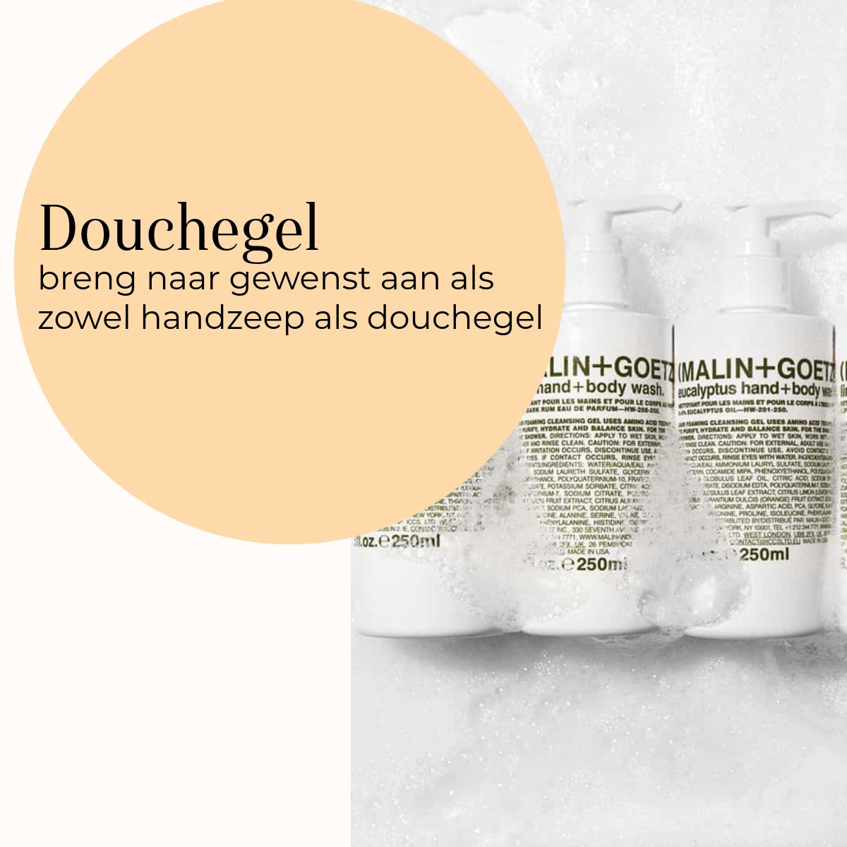 De Malin+Goetz Eucalyptus Hand + Body Wash zorgt ervoor dat de huid schoon en gehydrateerd wordt en weer fris aanvoelt zonder uit te drogen.
