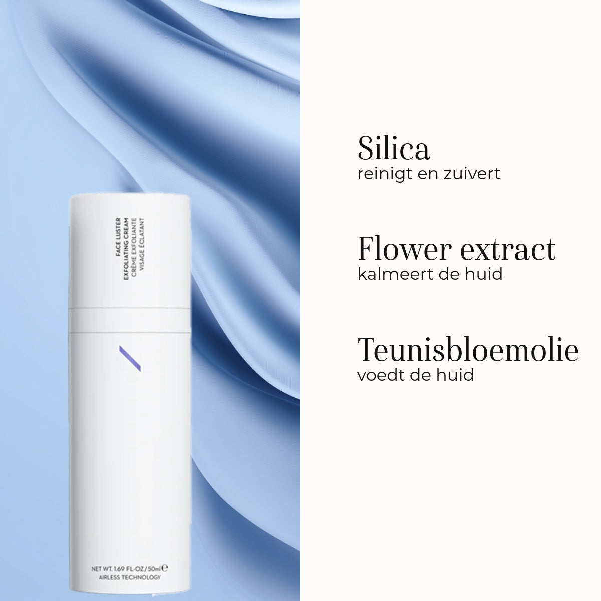 - Silica: Reinigt de poriën diep en zuivert de huid. Verwijdert voorzichtig dode huidcellen en vernieuwt de huid. Het helpt de huid te verlichten.