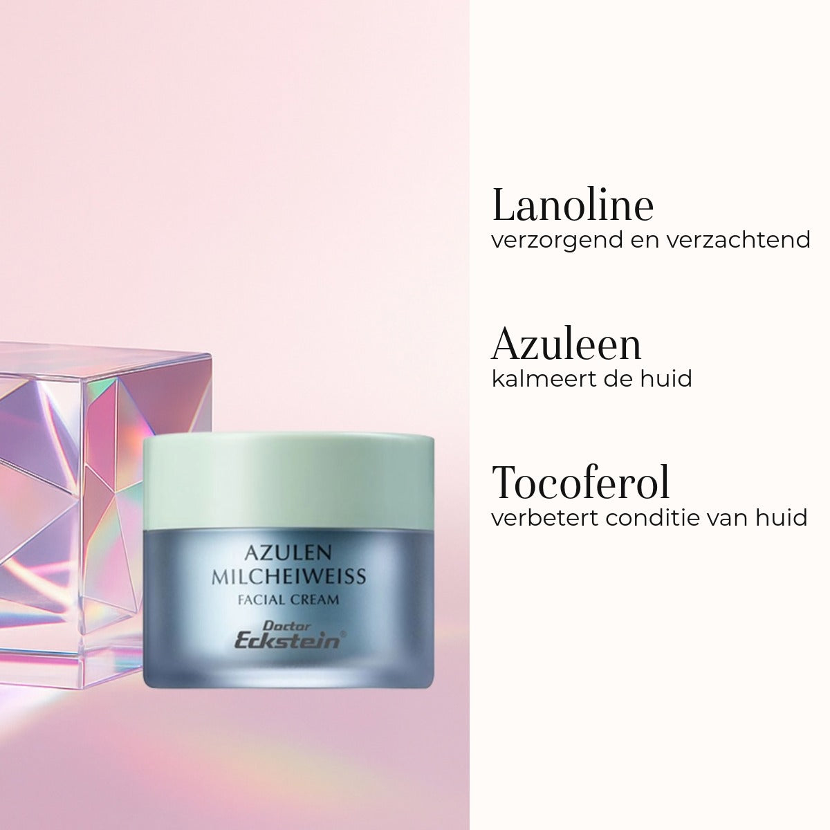 De Doctor Eckstein Azulen Milcheiweiss is een zeer intensieve en kalmerende gezichtscrème. De crème is als dag- en nachtverzorging te gebruiken. De crème herstelt het evenwicht van de huid en verbetert de natuurlijke weerstand van de huid. Ideaal voor de bescherming van de huid die last heeft van onzuiverheden, roodheid en gevoeligheid.