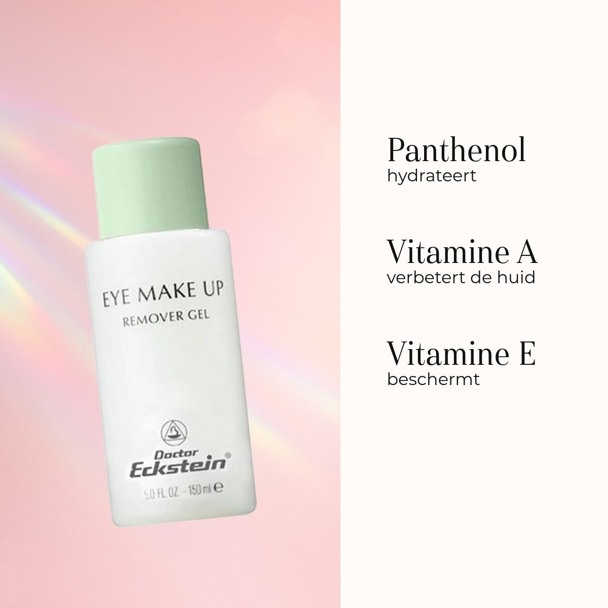 De Doctor Eckstein Eye Make-up Remover is speciaal voor de reiniging van de huid rondom de ogen. Deze zachte gel bevat onder andere Panthenol & Vitamine E.