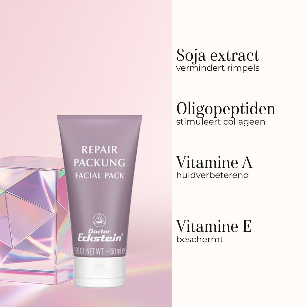 Het Doctor Eckstein Repair Packung is een herstellend masker voor de rijpere en de zonbeschadigde huid. Het verbetert de huidstructuur en gaat tekenen van vermoeidheid en huidveroudering tegen.