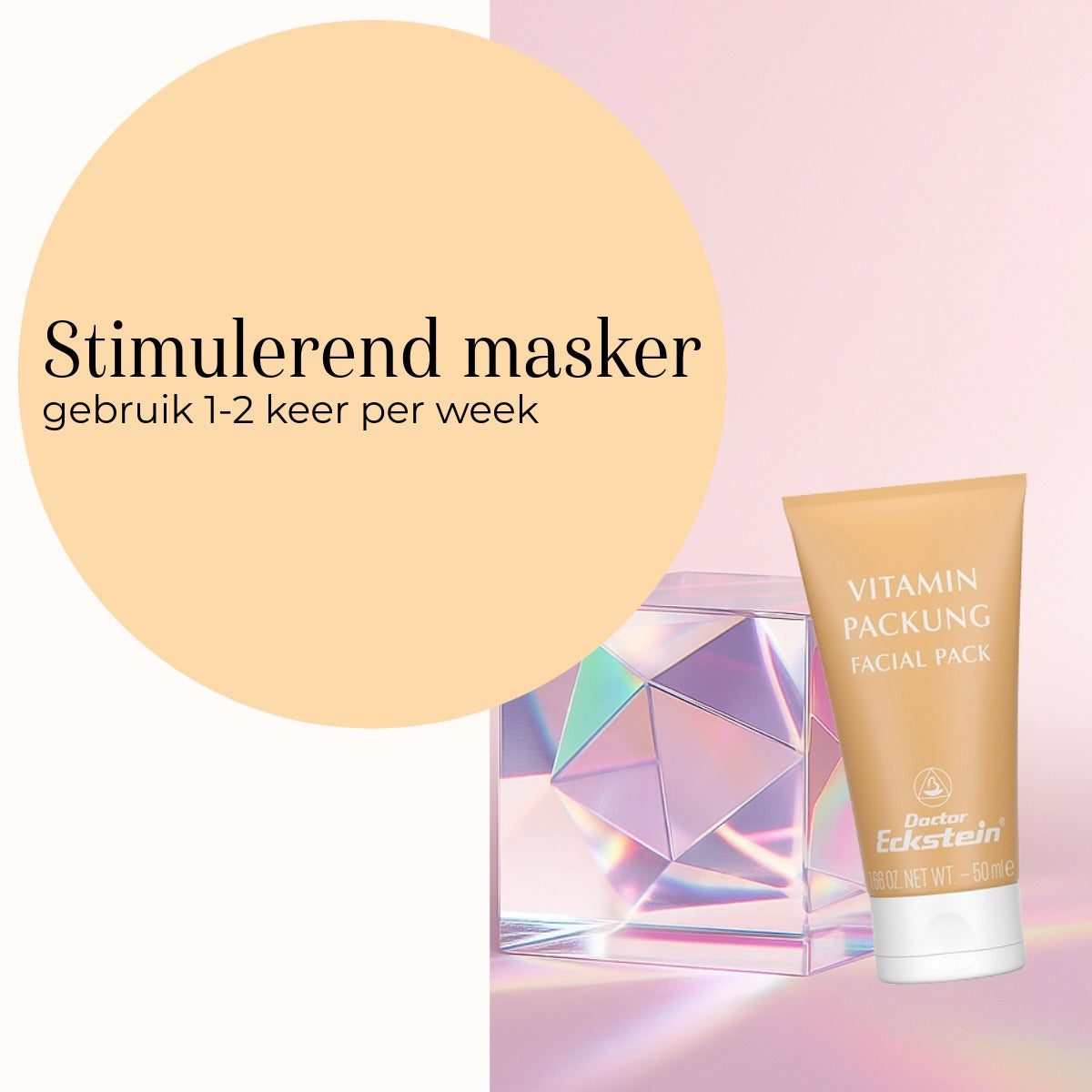 De Doctor Eckstein Vitamin Packung is een zacht en stimulerend masker voor de huid die wel een oppepper kan gebruiken. De werkstoffen in dit masker helpen de huid te herstellen van vermoeidheidsverschijnselen en zorgen ervoor dat vitamines worden aangevuld.