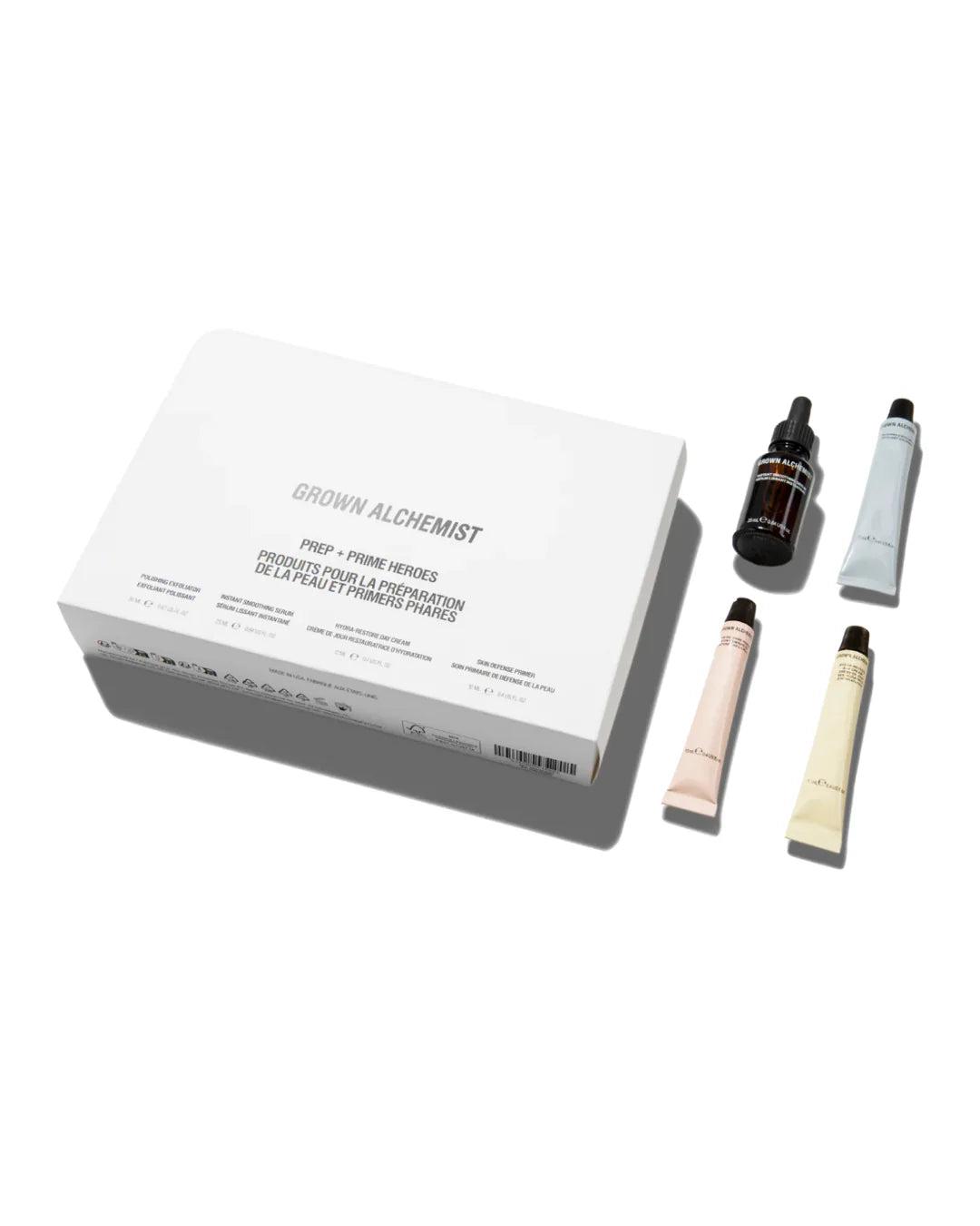 De Grown Alchemist Prep + Prime Heroes Kit is jouw dagelijkse basis voor een gladde, frisse en perfect voorbereide huid. Deze set bevat vier essentials die samenwerken om de huid te exfoliëren, hydrateren, verzachten en te egaliseren, ideaal als je make-up draagt, maar óók perfect voor een natuurlijke, healthy glow.