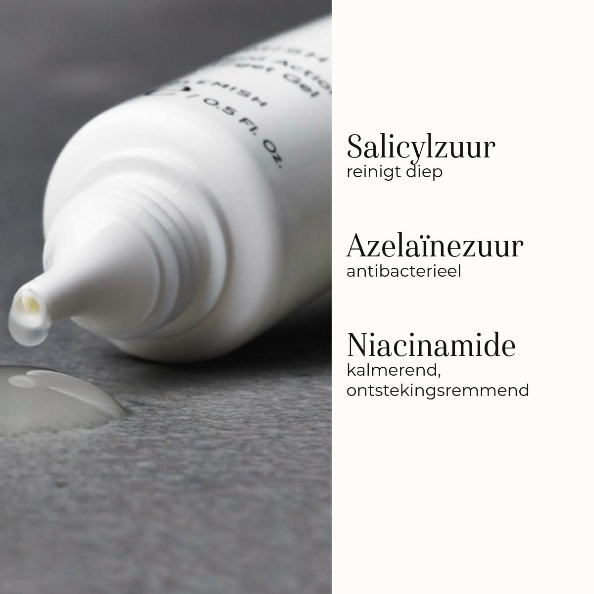 Deze sneldrogende gel zorgt voor een egale huid met zichtbaar verminderde ontstekingen en onzuiverheden.