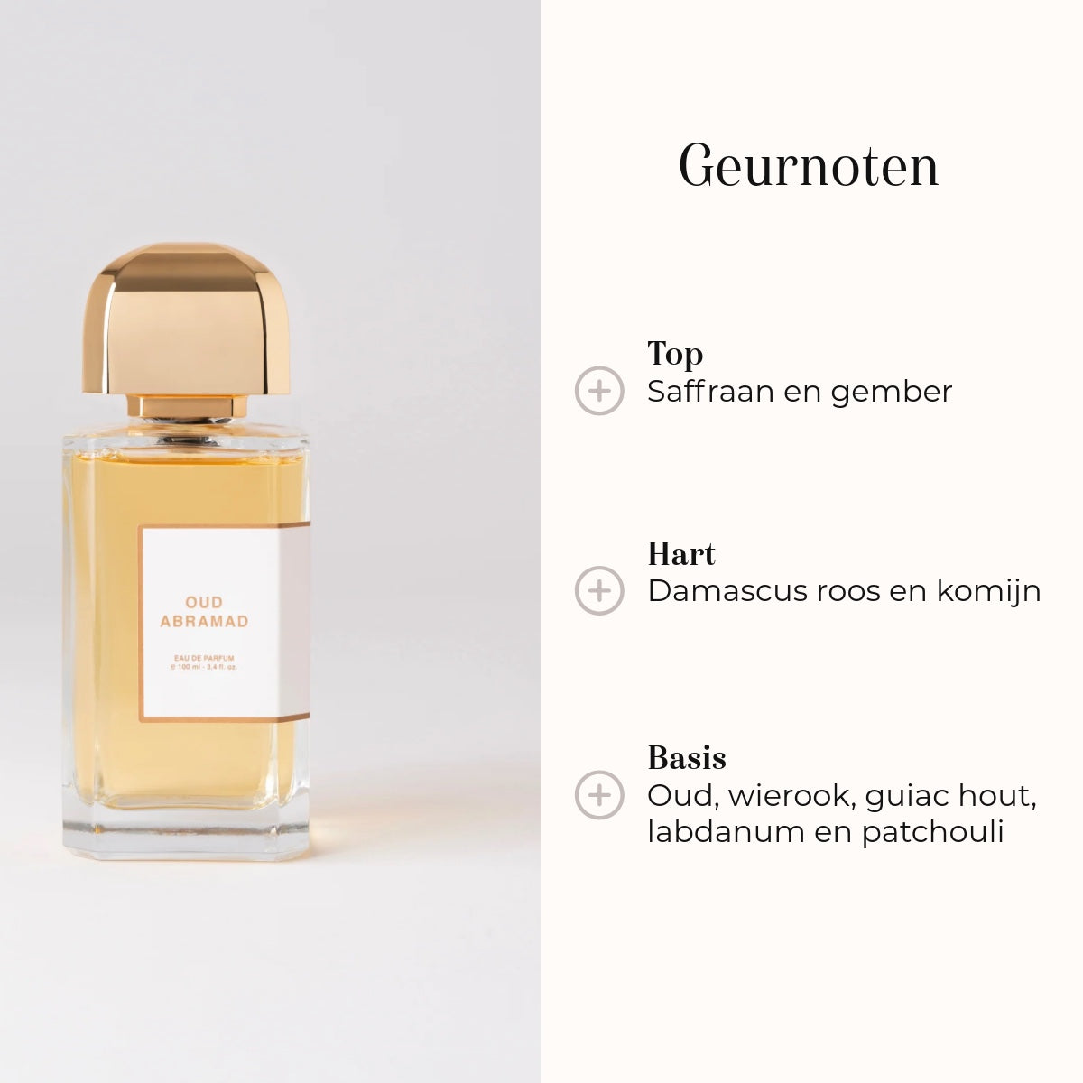 De BDK Parfums Eau de Parfum - Oud Abramad is samengesteld uit Indische oud, roos, wierook en hout. Kruidige topnoten van kardemom en saffraan geven de geur meer intensiteit. Voor wie op zoek is naar een intense, houtige en kruidige parfum.