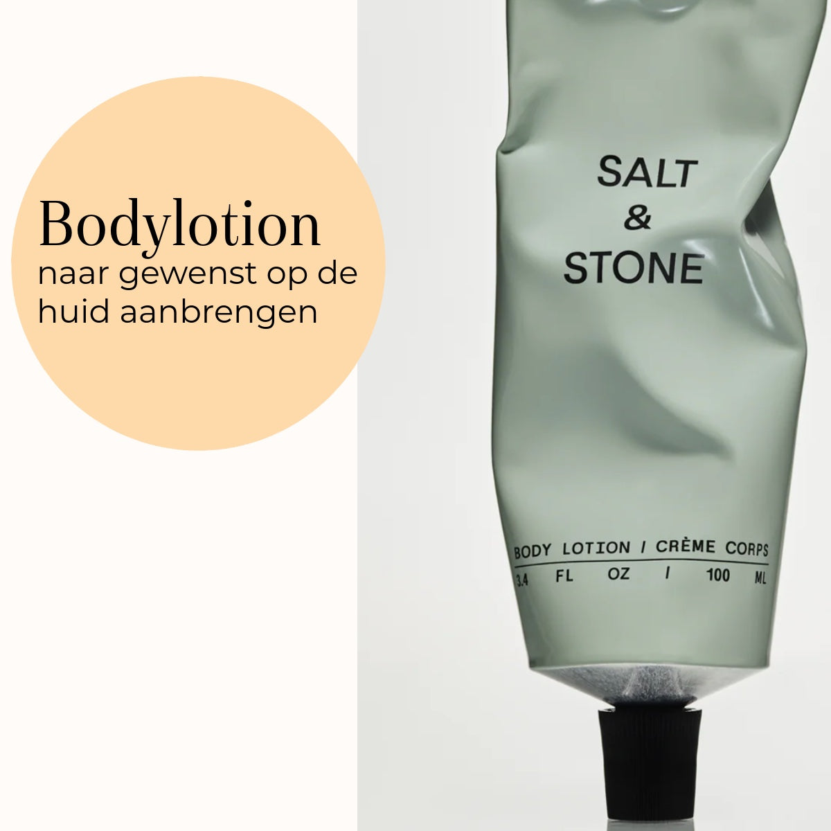 De Salt & Stone Body Lotion - Bergamot & Hinoki is een diep hydraterende bodylotion dat snel door de huid wordt opgenomen en haar zijdezacht maakt. Met geurnoten van bergamot, oranjebloesem en hinoki.