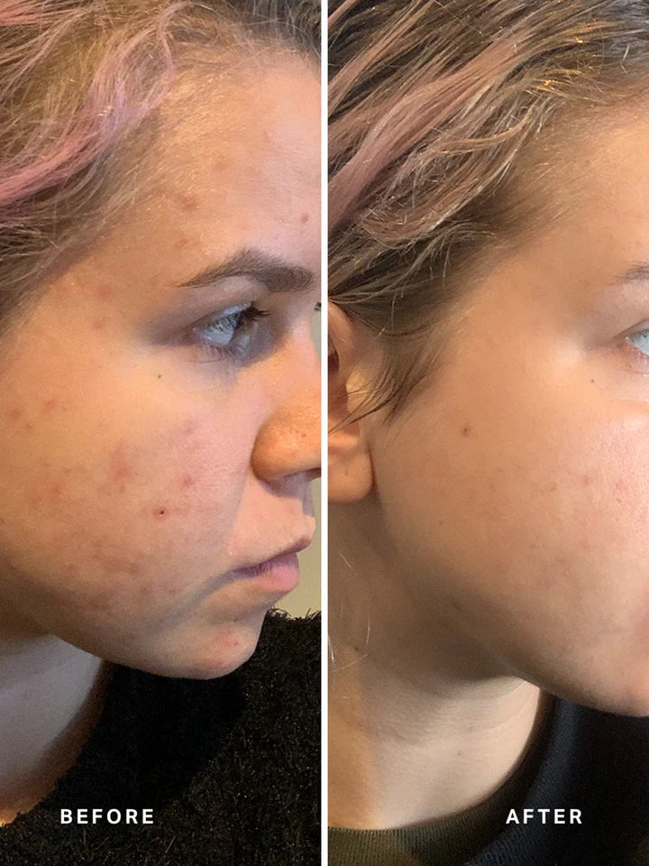 Zichtbaar verminderde puistjes en onderhuidse ontstekingen.