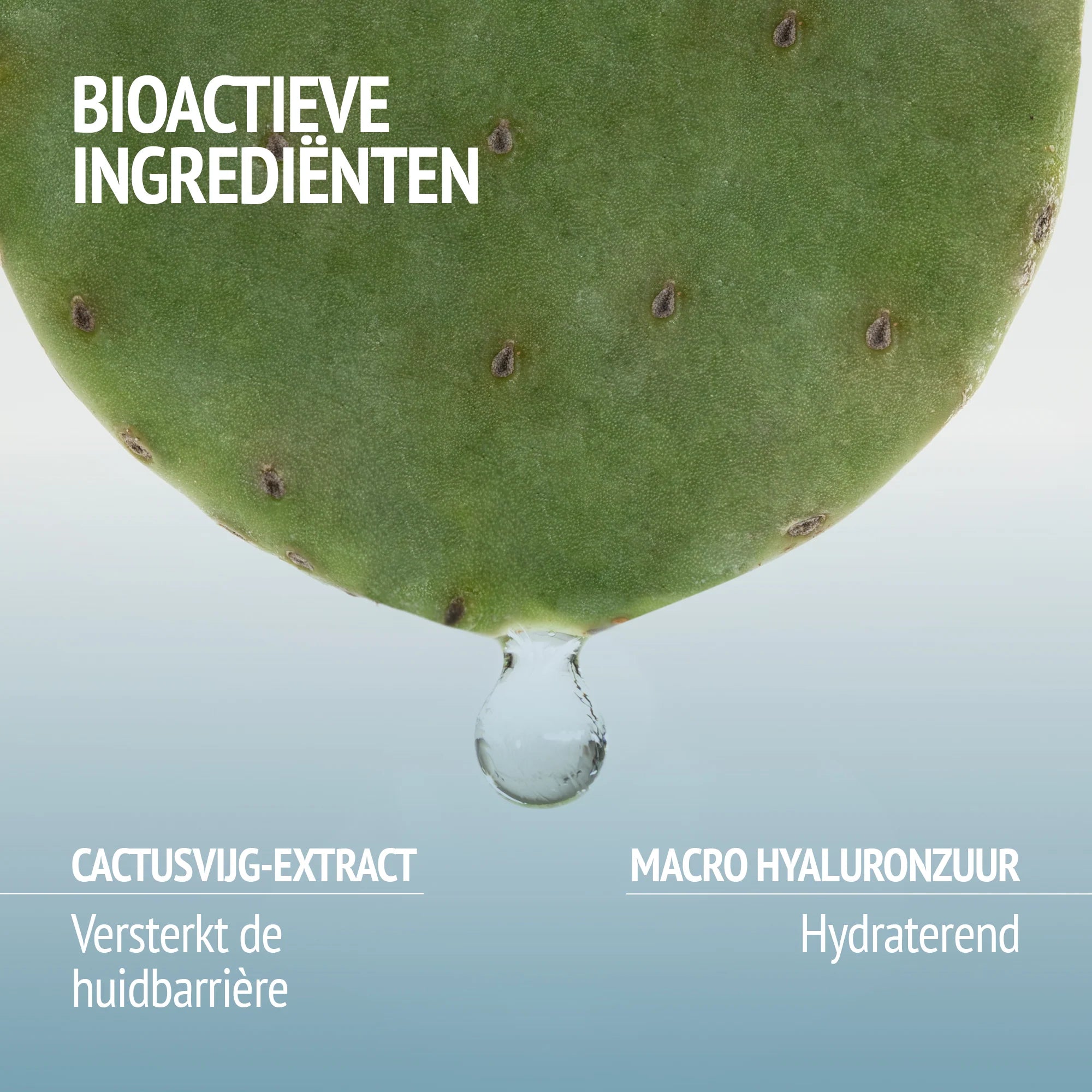 • Cactusvijg extract: Het helpt de huidbarrière te versterken en gaat uitdroging van de huid tegen.