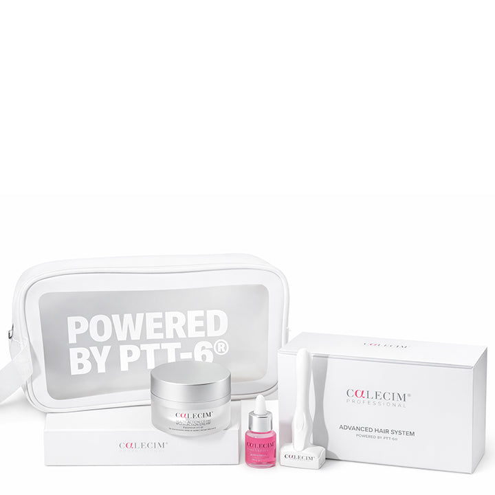 De Advanced Hair System van Calecim is een 6 weken durend haarherstelprogramma. Het bevat het krachtige ingrediënt PTT-6 die haargroei stimuleert door de haarzakjes te activeren. Daarnaast bestrijdt het ontstekingsverschijnselen die haaruitval veroorzaken.