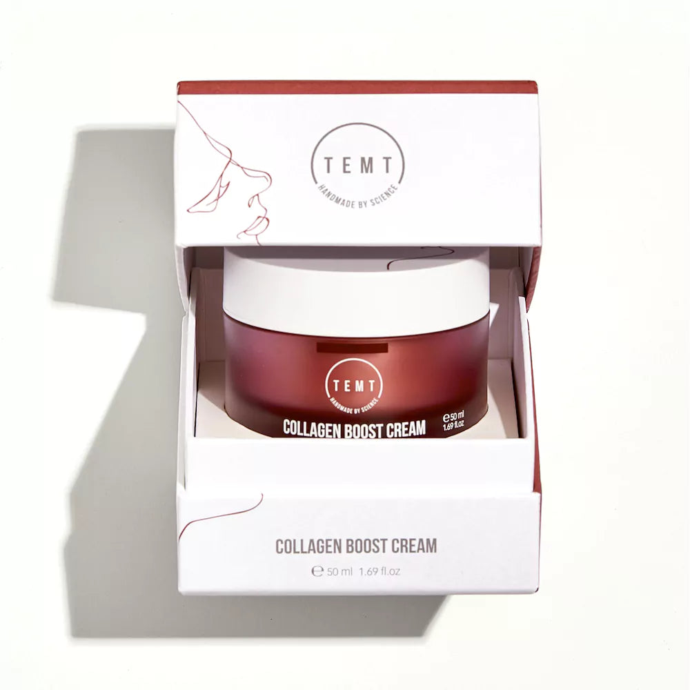 TEMT Collagen Boost Cream is een moisturizer met die de huid beschermt met antioxidanten. Daarbij stimuleert het de collageenproductie voor meer elasticiteit in de huid.