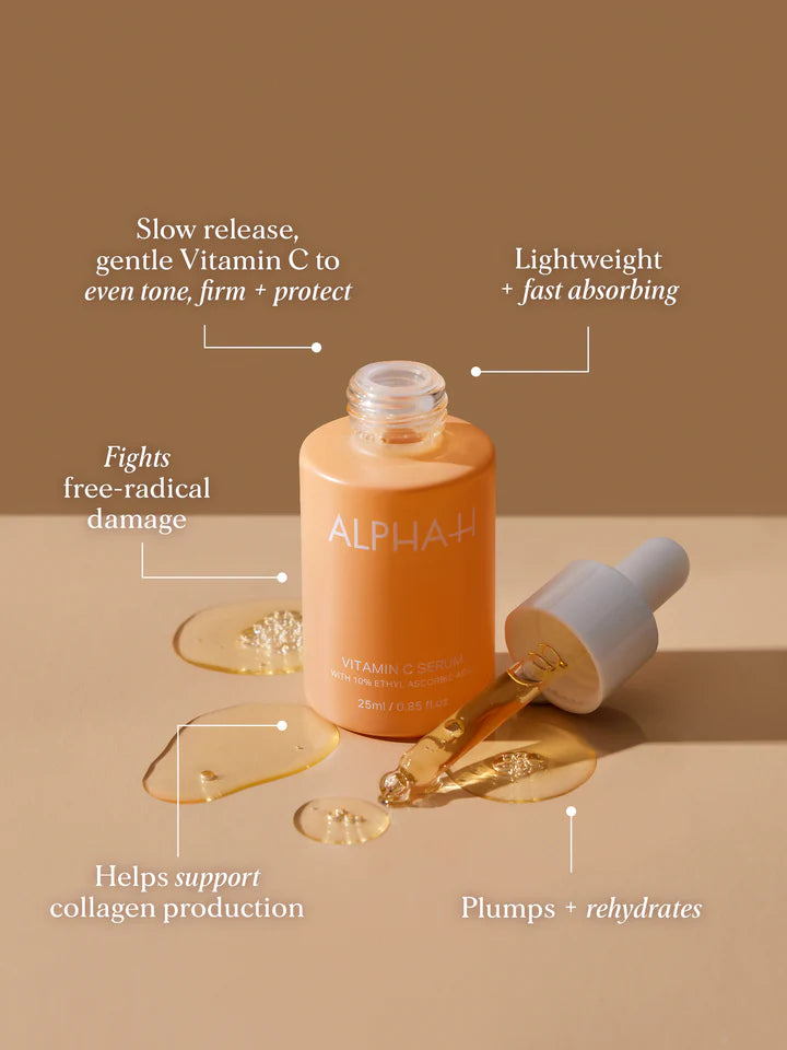 Het Alpha-H Vitamin C Serum bevat 10% vitamine C en is verrijkt met ingrediënten die ervoor zorgen dat het een echte multitasker is. Het vitamine c serum stimuleert de vorming van collageen, vervaagt pigmentatie, vermindert acne en geeft de huidcellen weer energie.