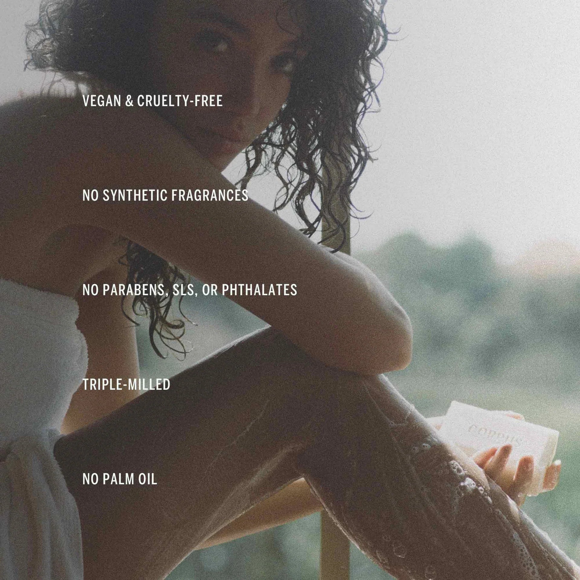 De Corpus Naturals Soap Bar - No. Green is een romige reiniger op basis van kokosnoot, in de vorm van een stuk zeep dat gaat schuimen. Het verwijdert onzuiverheden van de huid en heeft een voedende en hydraterende werking. Met geurnoten van bergamot, roze citroen, oranjebloesem en kardemom.