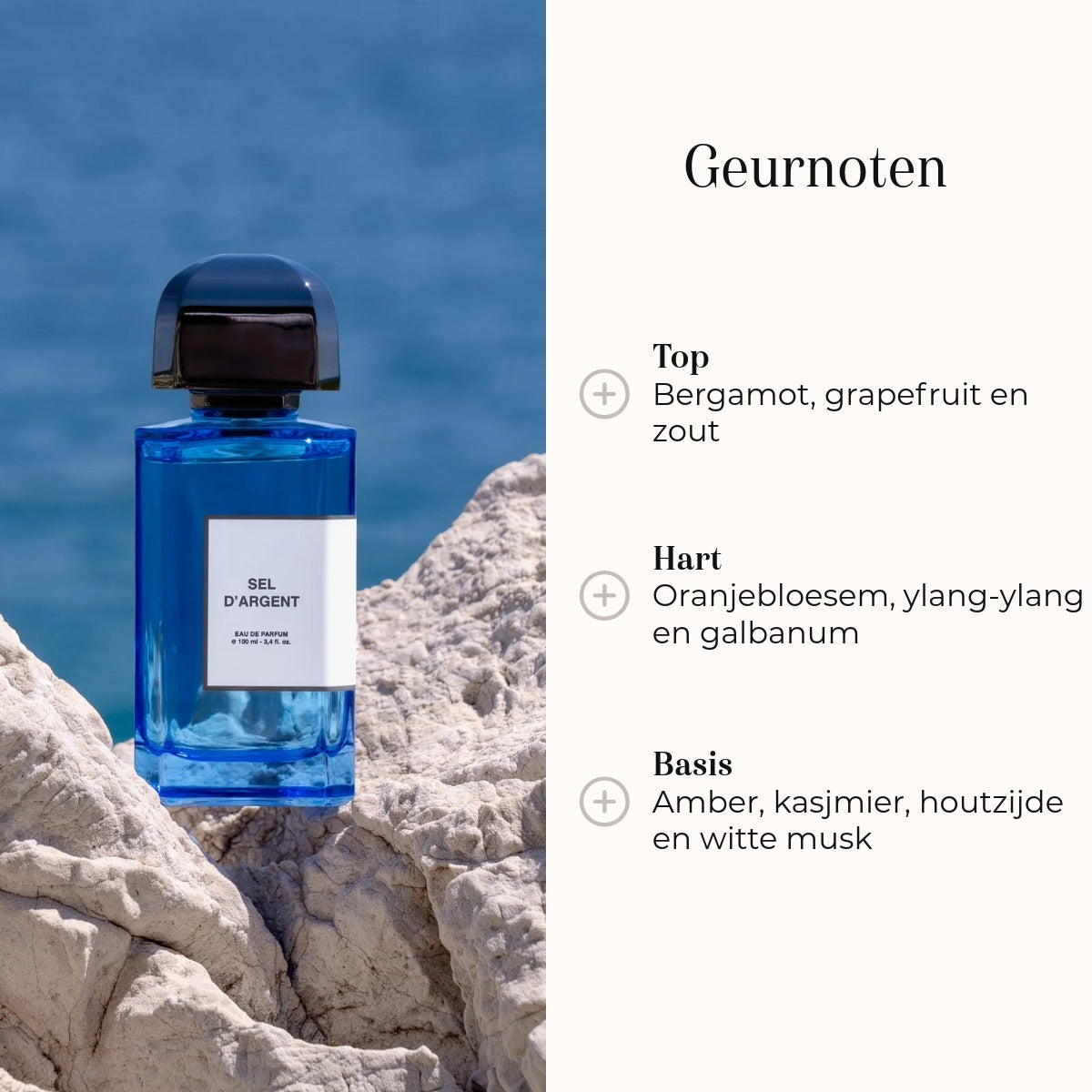 De BDK Parfums Eau de Parfum - Sel d'Argent is een aquatische parfum met frisse, zilte en muskusachtige noten. Bergamot en grapefruit worden in deze geur versterkt, terwijl bloemige en muskusachtige noten de parfum zacht en sensueel houden.