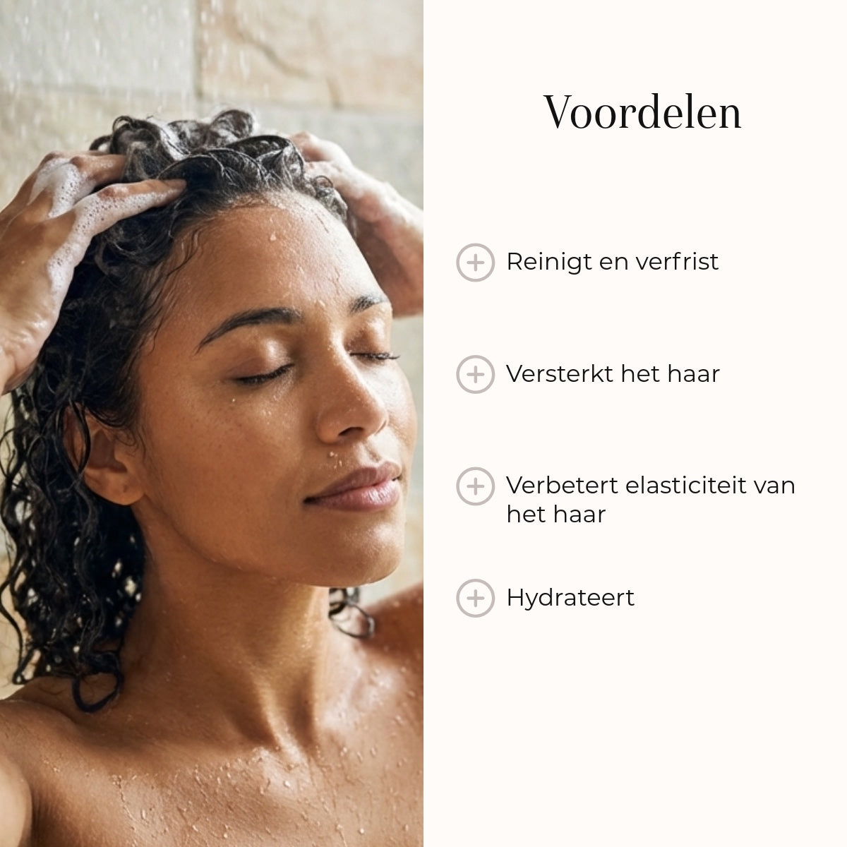 De shampoo is geschikt voor alle haartypen, waaronder gekleurd en beschadigd haar.