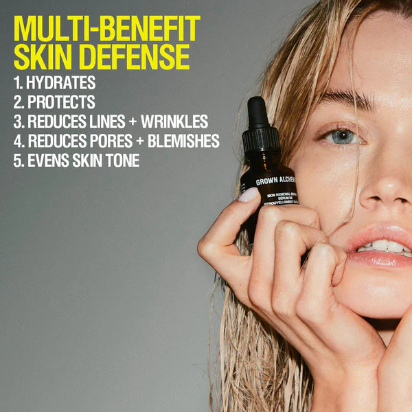 Het Grown Alchemist Skin Renewal Serum is een lichtgewicht serum op gelbasis. Het serum helpt schade te herstellen die veroorzaakt is door schadelijke invloeden van buitenaf. Het versterkt de huid door vochtverlies te voorkomen.